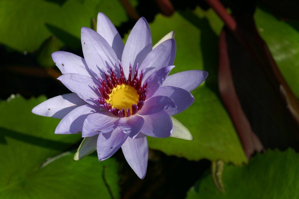 purple flower on water